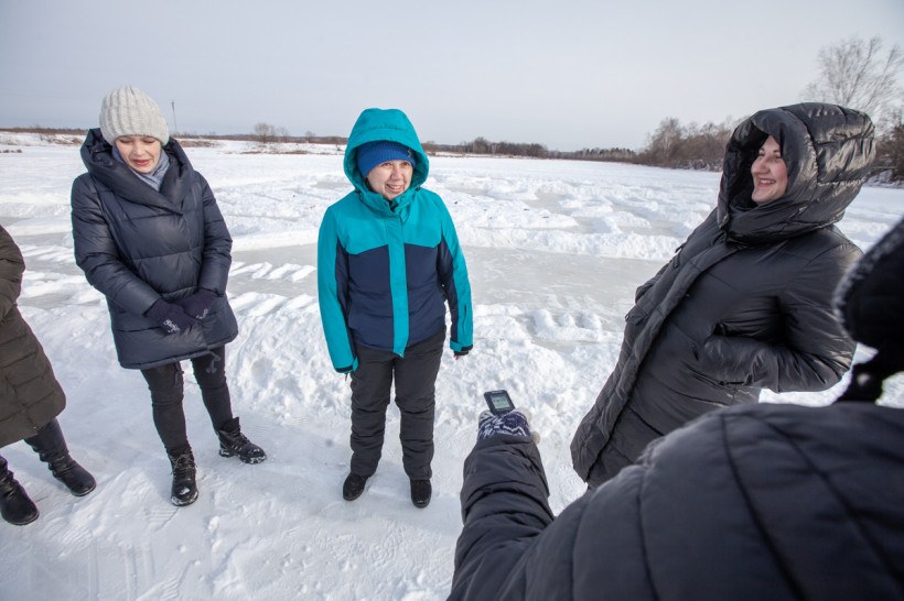 Хохотушки-художницы из Сергеевки рисовали ледовую открытку лопатами и тяпками