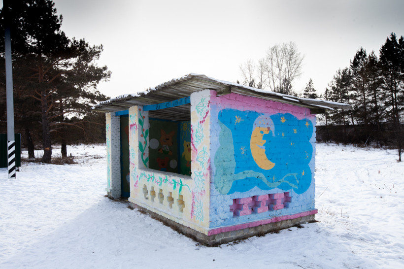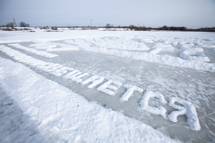 На часах январский полдень, а мороз в Сергеевке такой, что руки от холода ломит и нос звенит, если слегка стукнуть по нему. Главная сельская улица — Амурская, а вдоль нее колючая проволока — село приграничное. А еще на Амурской есть раскрашенные остановки — такие теплые, с забавными рисунками. А сразу за селом — Манжурка, которая впадает в суровый Амур. Летом на ее берегах отдыхают семьями, рыбачат. Этой зимой на водоеме появилась ледовая открытка. Рядом с творением ждут нашего приезда и несколько художниц — Людмила Гринева, Ирина Клименко, Олеся Щекина, Настя Колодяжная, Татьяна Зелинская и Марина Ермакова.