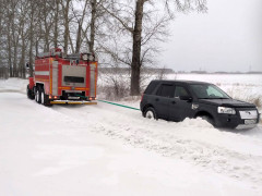 Пожарная машина вытаскивала из снега школьный автобус и автомобили на амурских трассах