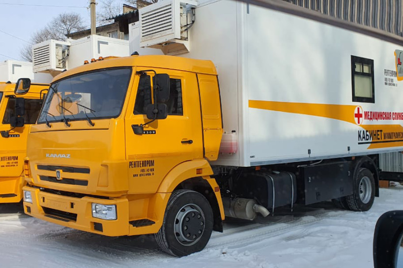 Передвижной маммографический кабинет изготовлен на базе шасси КамАЗа. В каждом автомобиле установлены цифровые маммографы, мебель, рабочее место лаборанта. Предусмотрена работа в любых погодных условиях и круглогодично. Для этого в машине есть входной трап с тепловой завесой над дверью, электрические радиаторы отопления, система кондиционирования воздуха.