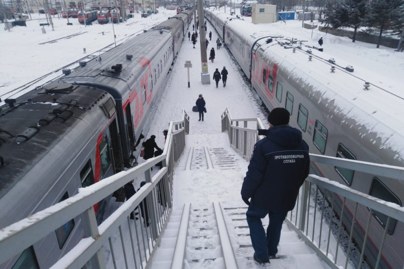 Организовано дежурство на железнодорожных вокзалах: пожарные беседуют с людьми и следят за температурным режимом в поездах. В готовности на каждой станции находится пожарный автомобиль, который в случае необходимости дозаправит водой системы остановленных поездов.