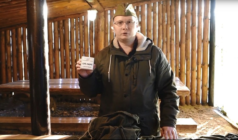 Ведущий продемонстрирует аутентичный набор концентратов и приготовит их в полевых условиях. Ролик дополнят подлинные фотографии военных лет.