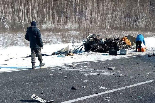 Смертельная авария произошла на трассе в районе поселка городского типа Ерофей Павлович Сковординского района днем в четверг, 25 февраля. Легковой автомобиль японского производства залетел под КамАЗ. От легковушки практически ничего не осталось — три человека погибли.