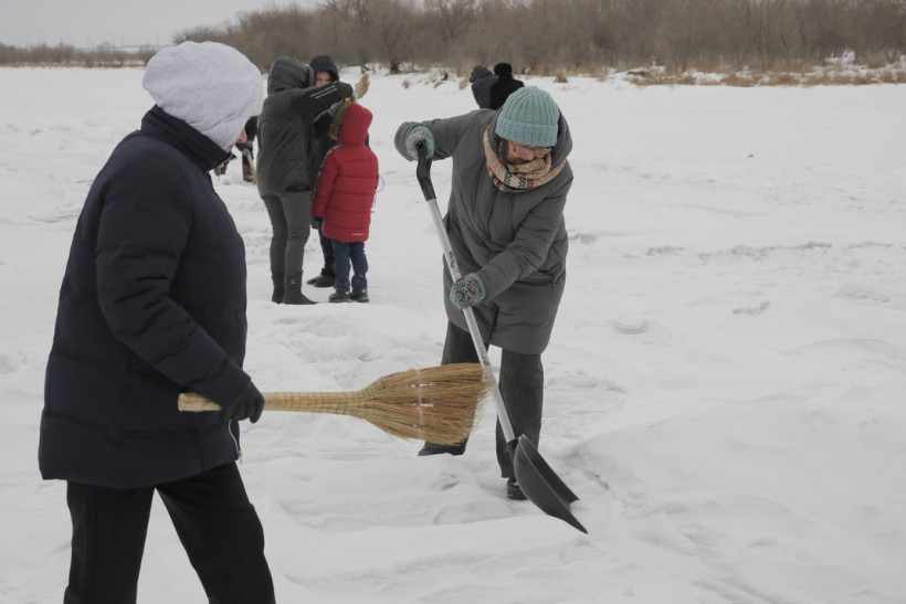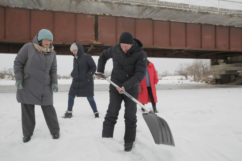 — Да за такую дорожку надо в пояс поклониться, — благодарили люди, проходя к ледовой открытке.