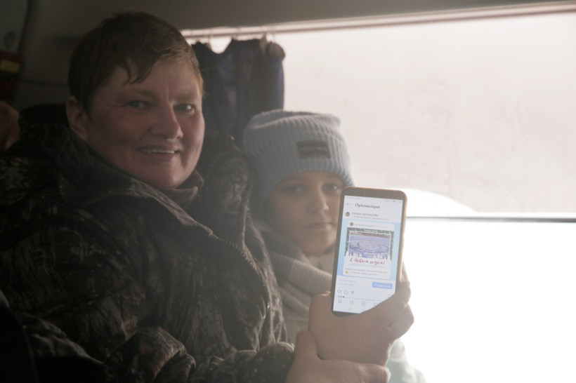 Гостеприимная Ивановка встретила нас танцами и песнями. Как пролетели полтора часа пути от Маркова за живой беседой, скрепленной песнями, интересными фактами из истории газеты и героического села, даже не заметили. Всем хотелось уже согреться чаем и обещанными домашними пирогами. Они появились потом на столе. Но сначала мы полюбовались на семейную ледовую открытку пенсионеров Эльвиры и Геннадия Глевинских, поразивших всех своим энтузиазмом и широтой души.