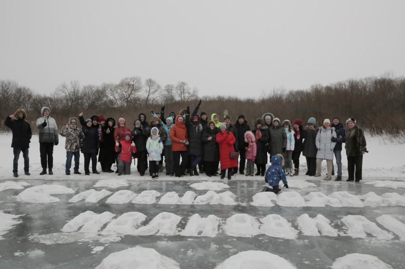 — Мы восхищались волшебной идеей Валерия Мельникова, его трудолюбием, добротой. Хотелось делать так же, как он. Декабрь, январь — мы все время ходили сюда, чистили снег и еще что‑то добавляли. С радостью согласились принять у себя экскурсию, когда об этом попросила Оксана Савченко, она приезжала еще в начале февраля. А потом вдруг наступила теплынь. Все растаяло. Тут ужас один был, — вспоминает Эльвира Яковлевна. — Думали: что делать? Если так тепло будет, то до дня рождения «Амурской правды» вообще ничего не останется. Подождали дней пять, а тут снег выпал. И мы пошли снова на это место: снег насыпали, лопатой прибивали — кубики наделали. А 24 февраля пришли и заново принялись на льду рисовать.