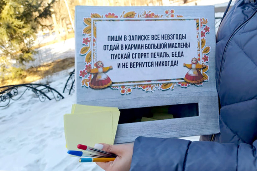 С 10 по 12 марта благовещенцы могут оставить записки, которые сожгут вместе с чучелом. Ящик установлен за сценической площадкой.