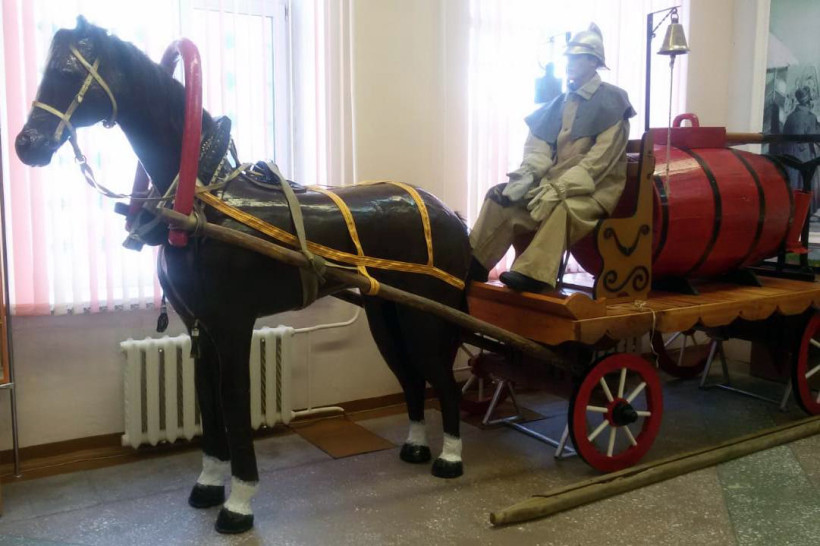 Как выглядел пожарный экипаж в начале ХХ века, могут увидеть посетители музейно-выставочного центра управления МЧС по Амурской области. Телега с пожарным здесь появилась два года назад, а лошадь сотрудники решили изготовить самостоятельно. Гриву и хвост заказали в деревне, туловище вырезали из пенопласта и обклеили газетами. И для полного завершения картины даже приклеили накладные ресницы. Чтобы конь выглядел натурально, спасатели изучили горы литературы по анатомии животных.
