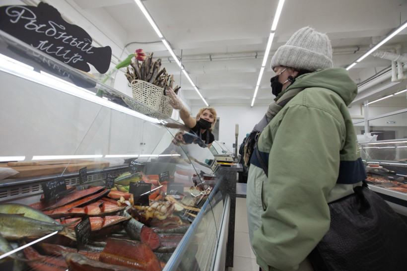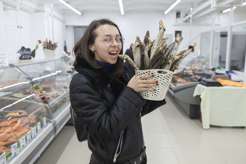 Женщина призналась, что работает на продуктовом рынке с 1994 года. Как бы ни менялись законы рынка, главное остается неизменным: прибыль идет к тому, кто предлагает качественный товар и много трудится. «Наша рыбка очень вкусная, коптится на ольхе, попробуйте», — тут же пускает в ход свои предпринимательские чары женщина с ярким макияжем.