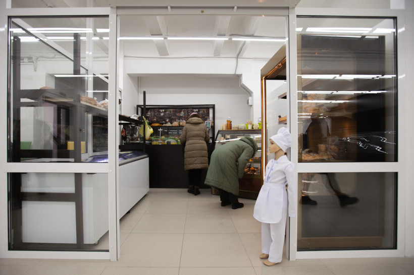 Приметить в здании бывшего ночного клуба фермерский мини-рынок непросто. Красочную вывеску не видно с улицы: она висит сбоку над лестницей, ведущей в подвал. Внутри — большое светлое помещение, уставленное витринами. Некоторые отделы еще в процессе оформления, слышен звук перфоратора. Но большинство торговцев уже успели освоиться на местах.