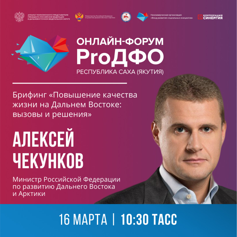Глава Минвостокразвития проведет брифинг на онлайн-форуме «ProДФО — Республика Саха (Якутия)»