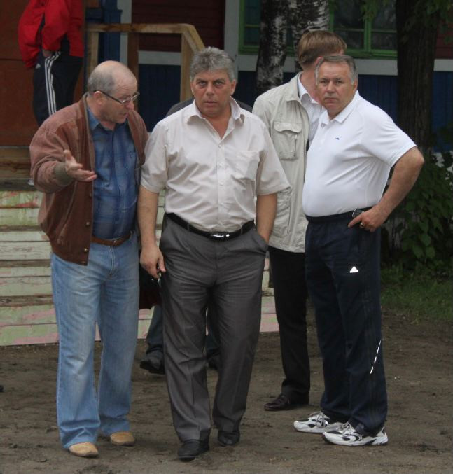 2011 год, стадион «Локомотив». Борис Литвинов справа, Владимир Афанасьев слева. В центре — Станислав Мелюков.
