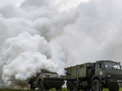 В Амурской области эшелон с боевой техникой замаскировали в аэрозольном облаке — так машины защитили от удара высокоточного оружия условного противника. Такую работу провели специалисты войскрадиационной, химической и биологической защиты (РХБЗ) на нескольких станциях погрузки при передислокации войск.