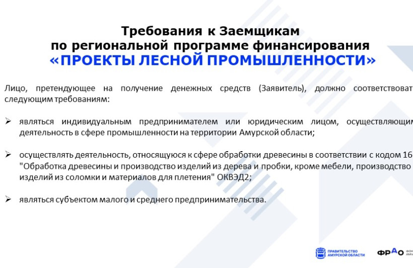 Условия определялись совместно с минэкономразвития области на основе лучших практик других регионов и с учетом специфики Приамурья.