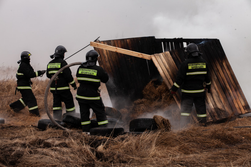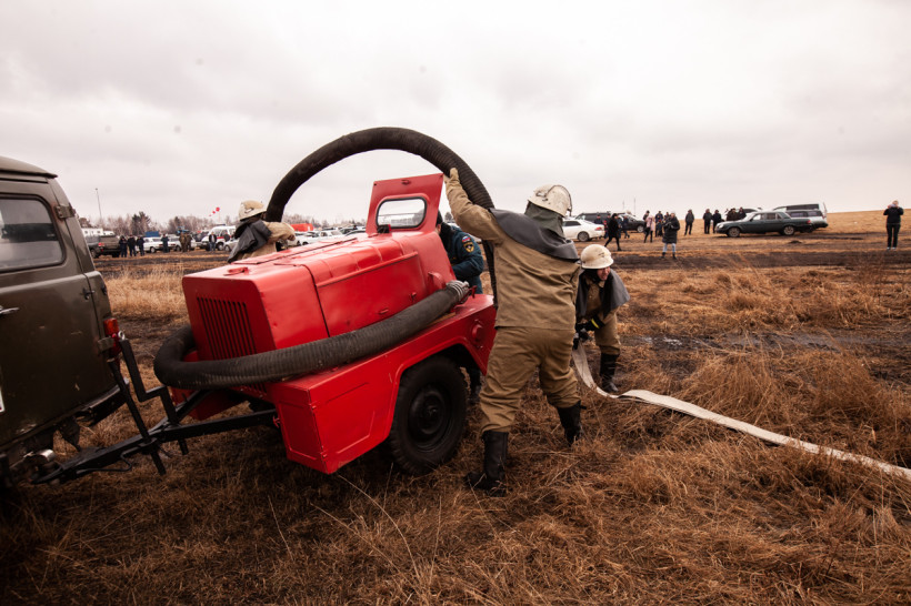 Под пеленой густого дыма по сухой траве расползаются языки пламени. Добровольная пожарная организация, первой оказавшаяся не месте ЧП, не справляется с ситуацией: огонь уже добрался до деревянных построек. На подмогу прибыли специалисты пожарной части на трех автоцистернах. За несколько минут пламя было ликвидировано. Так развивались события демонстрационного природного пала. Учения по координации действий организаций при тушении природных пожаров проводятся в области с 2010 года.