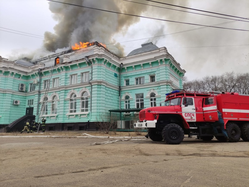 В Благовещенске на улице Горького в первой половине дня второго апреля загорелся кардиологический центр. На здании открытым огнем полыхает кровля. Как сообщил мэр Олег Имамеев, эвакуировано 67 пациентов: 49 размещены в помещениях АГМА, 14 отправили домой, троих доставили в областную больницу. Несмотря на пожар, в центре продолжается операция: пациента оперирует бригада из восьми человек.