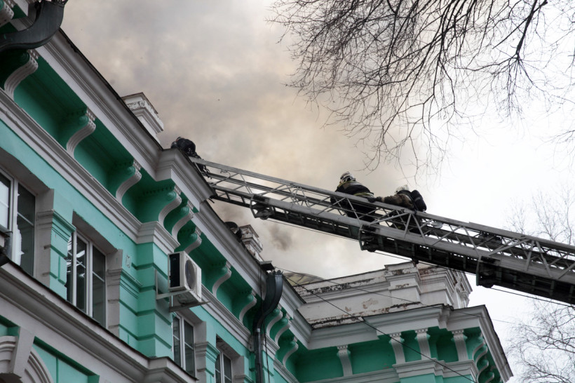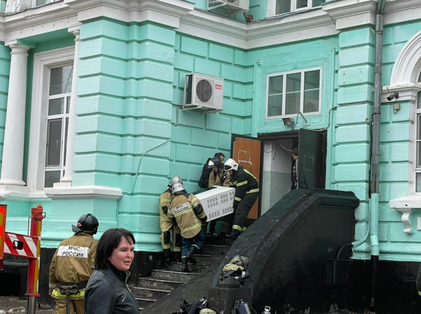 14.24 Открытое горение ликвидировано. Работы по ликвидации последствий пожара продолжаются. Одновременно с тушением пожарные, спасатели и медработники эвакуируют оборудование из здания.