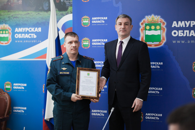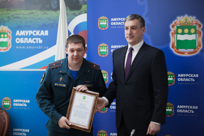 Министры здравоохранения и МЧС пообещали амурчанам федеральные наградыВо вторник, 6 апреля, губернатор Василий Орлов наградил медицинских работников и пожарных, благодаря профессионализму и мужеству которых удалось избежать жертв во время пожара в кардиохирургическом центре АГМА в Благовещенске. В экстремальных условиях бригада врачей завершила сложнейшую операцию на сердце, а в это время пожарные делали все, чтобы локализовать пожар и обезопасить операционную от дыма, огня и воды.