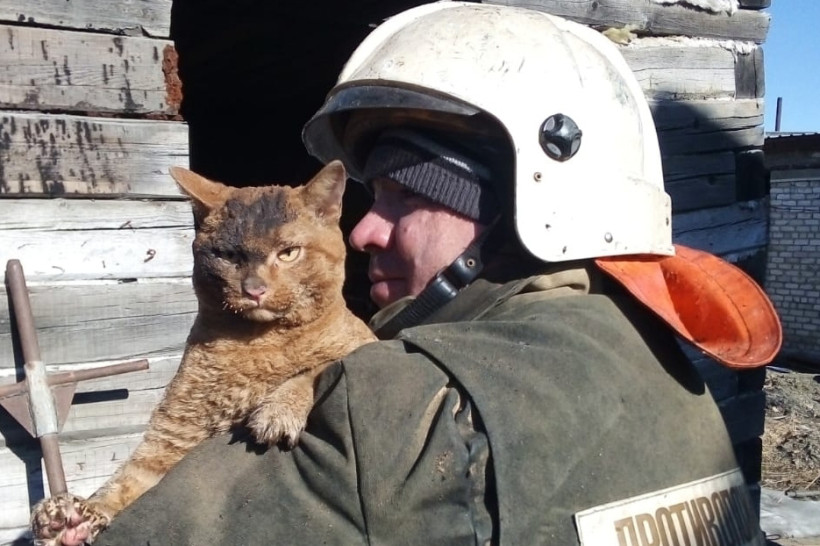 Во время тушения зимней кухни пожарные услышали жалобное мяуканье. Оказалось, что хозяйский кот забился в угол и не смог выбраться из-за бушевавшего вокруг пламени.