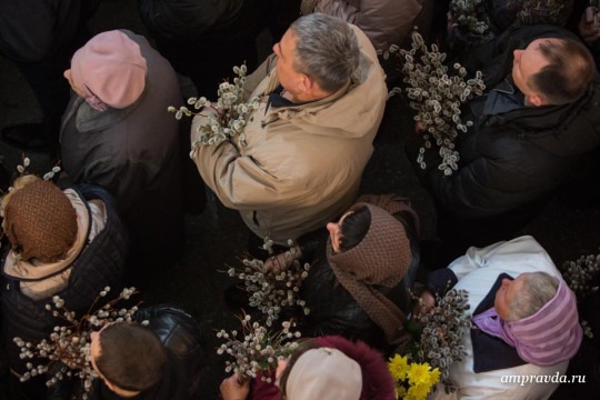 Накануне Лукиан архиепископ Благовещенский и Тындинский совершил всенощное бдение в храме Архистратига Божия Гавриила и прочих Небесных Сил бесплотных подворья Свято-Троицкого епархиального мужского монастыря в Благовещенске, а после этого освятил вербу, принесенную прихожанами. В 9 утра в Благовещенском кафедральном соборе и других храмах Приамурья началась праздничная литургия.