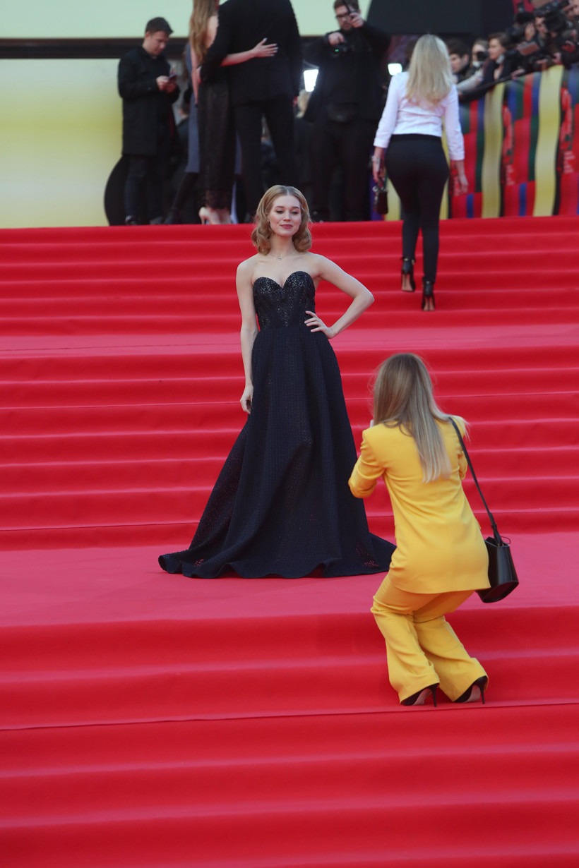 Красная дорожка — пожалуй, самая яркая часть церемонии открытия. Несмотря на то что погода была не совсем теплая, всего лишь +12 градусов, актрисы решили не думать о холодном воздухе и позволили себе открытые наряды: с декольте, разрезами и вырезами. Большая часть гостей по традиции была в черно-белых костюмах и платьях. В такой классической одежде появились Кристина Асмус, Екатерина Климова, Александра Савельева, Анна Банщикова, Зара. Но были и те, кто сделал выбор в пользу ярких цветов. Так, Мария Кожевникова появилась в ярком платье цвета фуксии. Кстати, подходящий наряд актриса, по ее словам, смогла найти перед самым выходом на красную дорожку. Марина Зудина выбрала интересное платье насыщенного сине-фиолетового оттенка, Агата Муцениеце блистала в бирюзовом платье, расшитом стеклярусом, а Ксения Алферова и Олеся Судзиловская решили сразить всех наповал белыми нарядами.