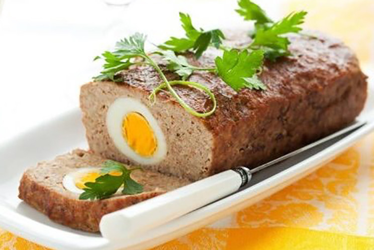 Далее приготовим мясной рулет с яйцом внутри. Яйцо не только обеспечит красивый разрез и интересный вкус, но и сильно сокращает время приготовления.