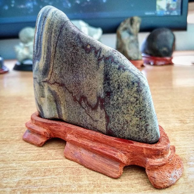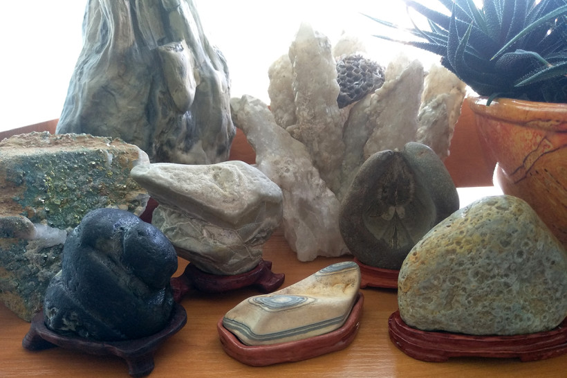 Суисеки — это сад камней в миниатюре. Он может помещаться на полке рабочего стола на маленькой подставке из дерева или керамики. Подставки под свои камни Роман Валерьевич делает из красного дерева. Оно называется падук и произрастает в других странах, поэтому заготовки для будущих работ коллекционер заказывает через интернет.