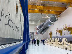 Совместный расчет специалистов Космического центра «Восточный» (филиал Центра эксплуатации объектов наземной космической инфраструктуры) и Ракетно-космического центра «Прогресс» (входят в состав Госкорпорации «Роскосмос») в монтажно-испытательном корпусе ракеты-носителя провели операции по перекладке «пакета» (первая и вторая ступени) ракеты-носителя «Союз-2.1б» на рабочее место в рамках подготовки к проведению испытаний.