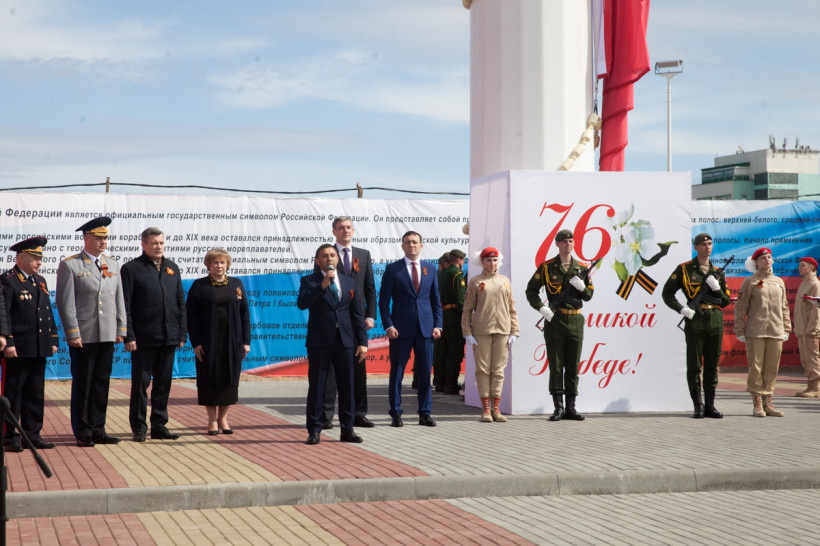 — В эти дни весь мир и наша страна отмечает 76-ю годовщину Победы в Великой Отечественной войне, — напомнил глава региона. — Сегодня в Благовещенске мы закладываем новую традицию. Каждый год в эти дни на самом высоком (75 метров. — Прим. авт.) флагштоке на Дальнем Востоке будет подниматься Знамя Победы. Оно будет напоминать нам о том великом сражении и той Великой Победе, о той великой чести и славе, которую снискала наша страна, снискала Красная Армия, победив фашистов.