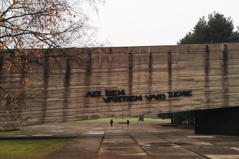 Саласпилс — первый мемориал на месте концлагеря, который я посетил. Он находится в латышском лесу, в получасе езды от Риги. Называть это место популярным у туристов язык не повернется — здесь почти нет посетителей, лишь несколько человек ходят по мемориальному комплексу. Туда и обратно пришлось добираться на электричке из Риги, а затем еще около получаса плутать с навигатором по лесу и проселочным дорогам. Мемориал в Саласпилсе встречает большой бетонной стеной и надписью «За этими воротами стонет земля». На месте концлагеря сейчас большая поляна, где установлены огромные, с пятиэтажный дом, фигуры людей из бетона. Они видны издалека, и по их позам символически считывается трагизм случившегося. Настоящий трагизм показывают залитые дождем мягкие игрушки, оставленные на месте детского барака. Считается, что в Саласпилсе фашисты издевались над детьми и брали у них кровь для госпиталей, а также отправляли на работы — основным профилем лагеря была заготовка леса. Поэтому посетители мемориала оставляют здесь игрушки, записки и лампадки. В Саласпилсе, по оценкам, погибло около 100 тысяч человек, в том числе около семи тысяч детей. Скорее всего их останки были сожжены и похоронены в одном из окрестных лесов.