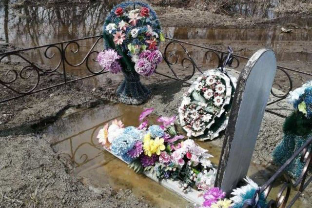 Моментом в море: городское кладбище Зеи подтопили талые воды