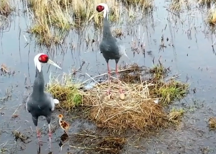 - В прошлом году во время учетов по Амурской области из более чем 180 отмеченных пар даурских журавлей ни разу не отмечались пары с тремя птенцами. Обычно у журавлей в кладке не больше двух яиц, — пояснил Сасин.