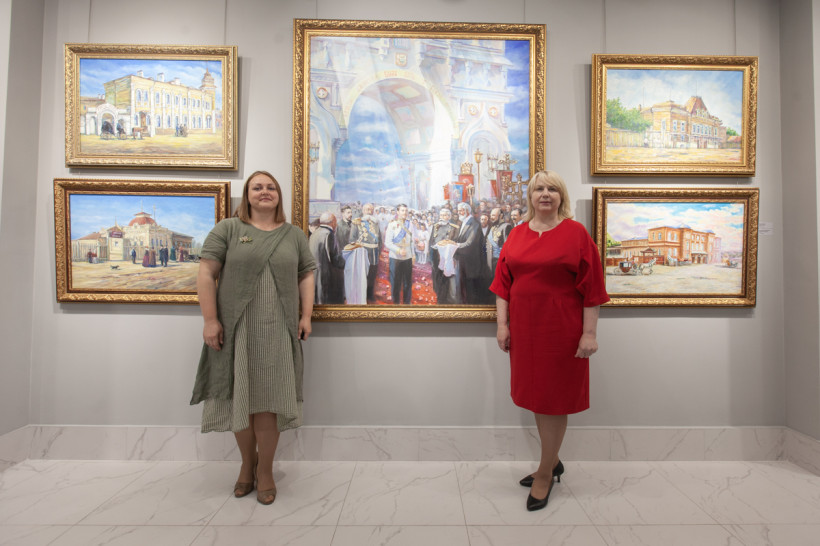Наталья Дроздова-Ермолаева представила самое масштабное полотно на выставке — «Приезд цесаревича Николая на землю Амурскую». Самое сложное в написании картины — работа над историческими личностями, призналась художница: