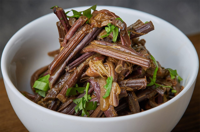 Нарежьте остывший папоротник на кусочки по 2—3 см, сложите в миску.