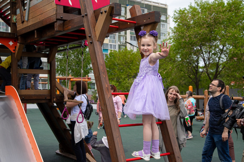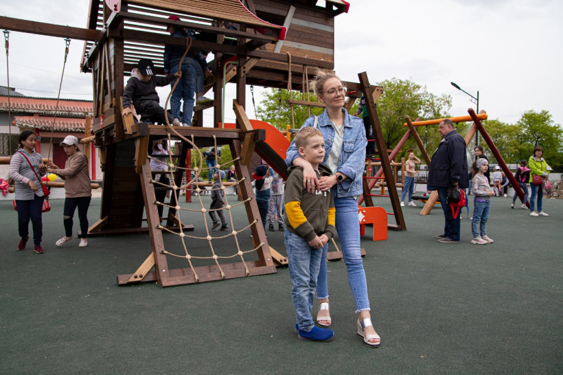 В День защиты детей в столице Приамурья открылась современная детская площадка. Новое место для отдыха юных благовещенцев развернулось в микрорайоне в центре парка Дружбы на площади 900 квадратных метров.
