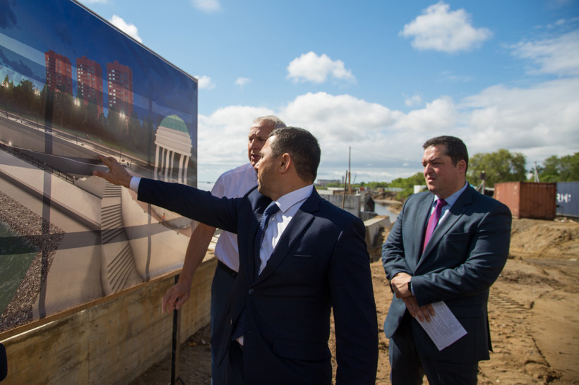 — Мы периодически выезжаем на этот объект и отмечаем нормальный темп выполнения работ. У подрядчика есть небольшое отставание от графика, связанное с высокой водой в Зее, но рисков не уложиться в сроки пока нет, — отметил Олег Имамеев. — В ходе выезда мы также посмотрели ряд предложений от заказчика, подрядчика и ЦРТ по благоустройству этой территории. Эти работы я поручил отработать в течение недели, после этого мы придем к какому-то общему знаменателю.