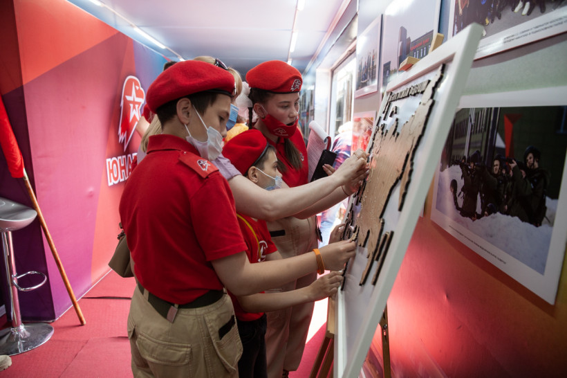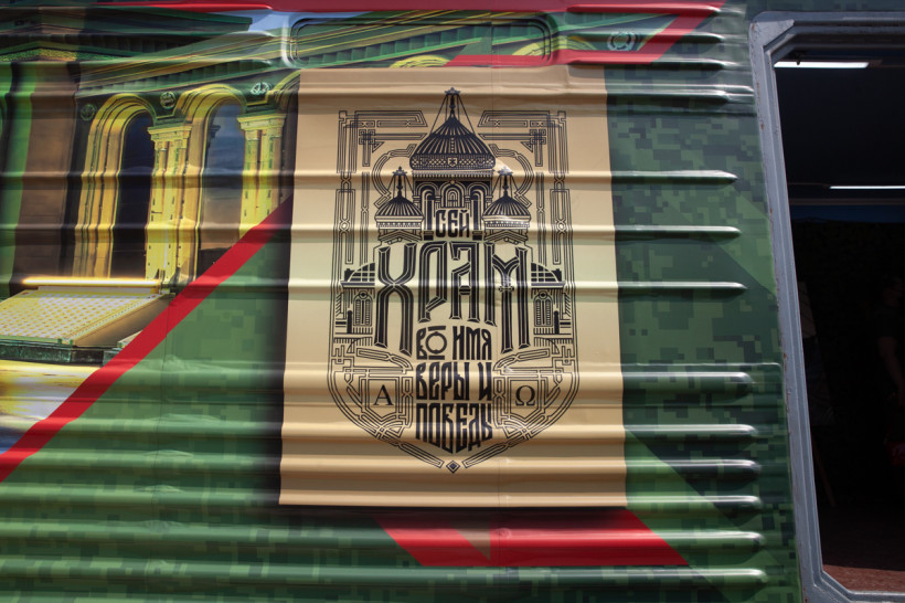 Самая большая очередь в первые минуты выстроилась в вагон с передвижной церковью. Здесь можно было не только поставить свечку за тех, кто не вернулся из боя, но и узнать о главном храме российских военных в подмосковном парке «Патриот».