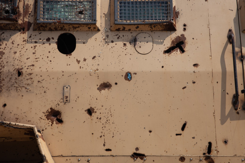 Курсант ДВОКУ анголец Келсо Валенте с трудом оторвался от платформ с военной техникой. Здесь можно было увидеть не только современные российские танки, но и захваченные в Сирии машины боевиков — со следами пуль и осколков.