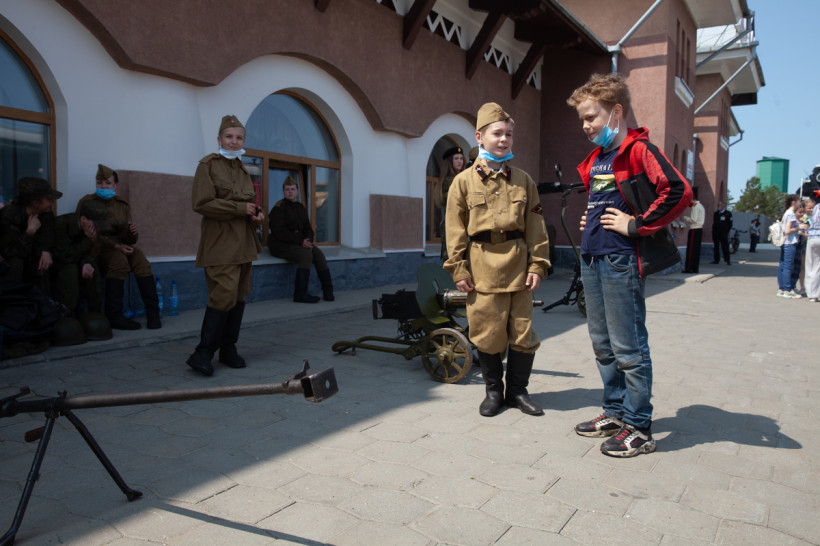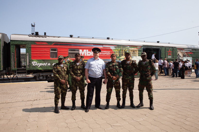 — Наш эшелон вышел 25 апреля с Киевского вокзала из Москвы, — по-военному доложил руководитель акции полковник Игорь Сокол. — Наш поезд — уникальный. Здесь можно увидеть платформы с новейшими образцами вооружения нашей армии, одна платформа — трофейная техника, захваченная у ИГИЛ. В одном из вагонов представлены такие уникальные исторические образцы, как точная копия Знамени Победы, орден Победы, солдатские ордена Славы. Из запланированных 51-й станций ваша станция 37-я. Уже сейчас можно сделать вывод, что эшелон очень востребован. Нас везде ждали! Люди приходили — смотрели. На некоторых станциях пришлось продлевать время акции, потому что люди шли и шли. Приехали из Биробиджана, а завтра уже акция в Белогорске.