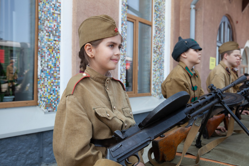 — Мне нравится ППШ — пистолет-пулемет системы Шпагина, образца 41-го года. Масса без патронов и магазина — 3 килограмма 630 граммов, скорость пули — 500 метров в секунду, скорострельность — 900 выстрелов в минуту, — рассказала девушка. — Оружие прикольное. Я тоже хочу быть военной, когда вырасту. Правда еще не определилась кем, танкистом или летчиком. Мама у меня стоматолог, поэтому я ничего не боюсь.