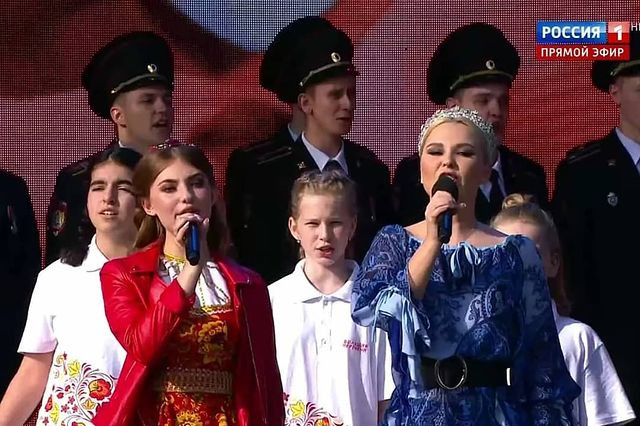 — Наши победы — это не только часть нашей истории, они наши настоящее и будущее. На нашей сцене девушка из Благовещенска. Настоящая русская красавица, которая в прошлом году стала победительницей конкурса «Большая перемена», — так представили юную благовещенку ведущие концерта Дмитрий Губерниев и Мария Ситтель.