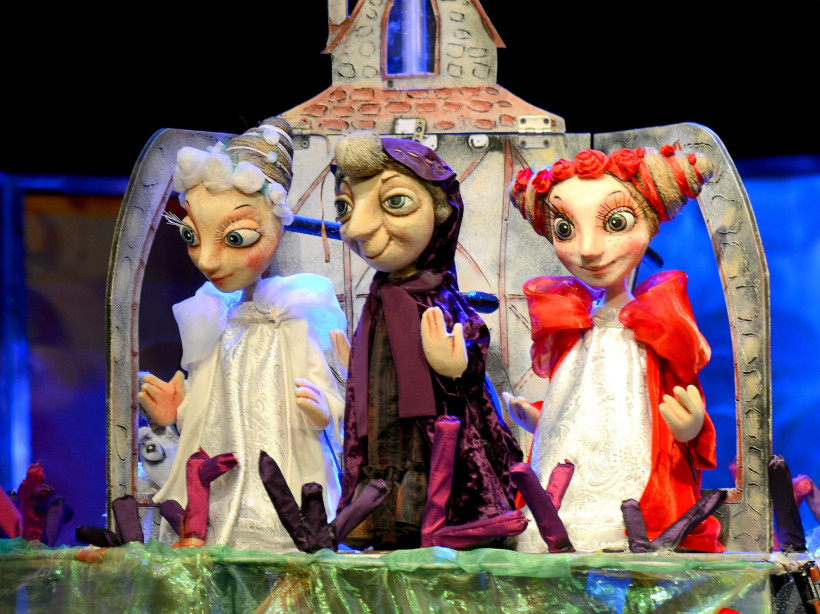 А вот самую красивую выбрать сложно. Все куклы-принцессы, золушки, феи, красные шапочки очень красивые. Например, очень яркие куклы из спектакля «Белоснежка и Краснозорька», но они сейчас находятся на отдыхе. Все три красавицы — марионетки, то есть куклы на ниточках.