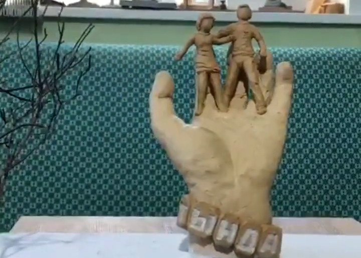 — Мне позвонила мэр города и спросила, можем ли мы с сыном придумать макет смотровой площадки, откуда с большой высоты был бы виден город как на ладони. Отсюда и возникла идея — сделать композицию в виде раскрытой ладони, — рассказал АП слесарь экспериментального цеха бывшего локомотивного депо Виктор Кузнецов-старший. — Смотровая площадка у нас как бы была — молодожены там бантики на деревья повязывали, но она не облагороженная. И я сделал «черновик» — вылепил из пластилина руку и стоящих на ней людей. А чтобы было ясно, что это именно Тында, на браслете вылепил название города. Кстати, браслет может быть символом железной дороги, все-таки Тында — это столица БАМа.