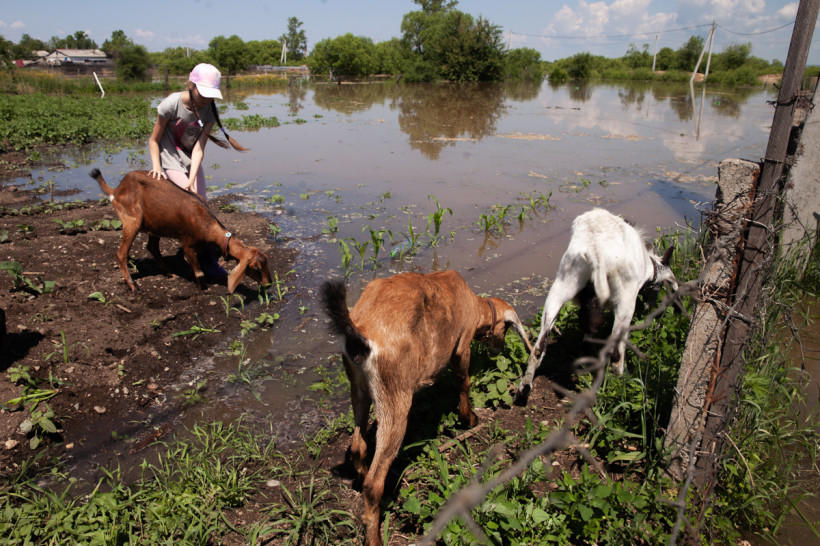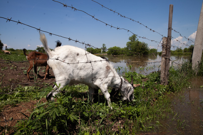 «Иди сюда, маленький», — мягко проталкивают под ограждением из колючей проволоки в чужой огород перепуганного белого козлика. Малыш тут же присоединяется к своим блеющим собратьям и начинает с аппетитом уминать молодые листья кукурузы. Никто не ругает скотину за порчу растений: на урожай в этом году хозяева не надеются, ведь половина огорода уже под водой. При этом жители Игнатьева ждут подъема уровня реки еще до полутора метров. В селе уже подтоплены 12 жилых домов и 28 приусадебных участков.