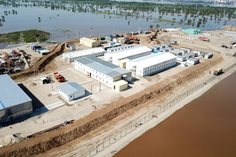 — С 21 по 23 июня мы подняли всю спецтехнику и механизмы на высокие отметки, на насыпи. На левом берегу защитили временные строения, жилой городок и штаб земляной дамбой. Убрали технику с опор, по рекомендации проектировщиков принудительно затопили 3 котлована, заполнили их водой, чтобы не разрушились шпунтовые ограждения, и разобрали временный мост к седьмой опоре на правом берегу, — о проделанной работе доложил руководитель проекта — руководитель ОП АО «УСК МОСТ» Эдуард Давыдов. — Вчера провели передислокацию мощностей на правый берег, усилили работу на этой площадке. Так как объем работ на период прохождения паводка снизился, порядка 200 человек жителей Амурской области отпустили домой с сохранением предусмотренной в таких случаях части заработной платой, остальные специалисты работают на правом берегу. Ждем прохождения пика паводка.