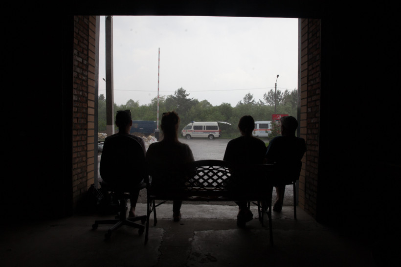 Обратно до трассы нас подбросил автобус со студентами-медиками. С девяти утра они всем вторым курсом (больше восьмидесяти человек) приехали на помощь жителям Владимировки.
