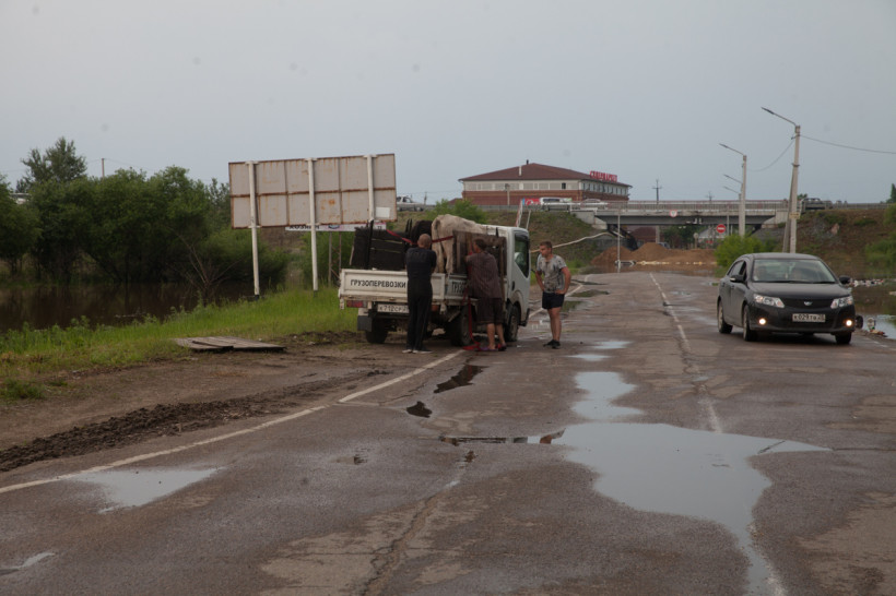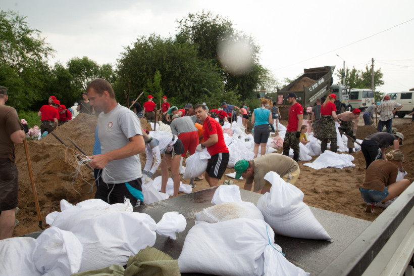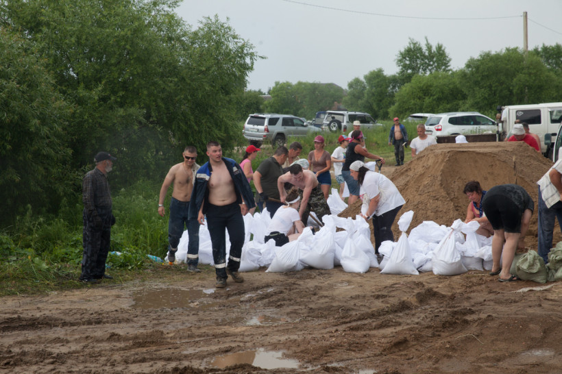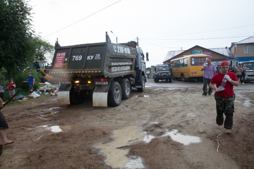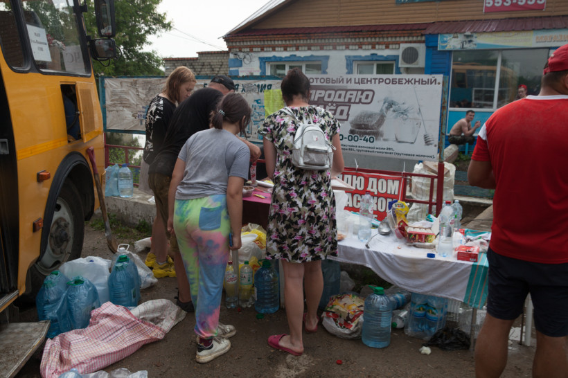 — Вчера утром ехала на работу, та часть села была еще сухая. А когда возвращалась с полей, пошла вода водопадом и протока начала наполняться. За ночь половина села ушла под воду. В этом месте вода идет с протоки. Зея — мощная, куда ей деваться, вот и пришла на поля, а потом к нам. Половина села уже под водой. Осталась наша одна спасительная артерия — центральная дорога. С одной стороны уже море, а вторую — пытаемся спасти. Три дня назад поставили блоки, сделали дамбу. Но вода наступает. Сегодня как раз переломный момент — справимся или нет. Рабочих рук, техники не хватает. Спасибо огромное волонтерам.