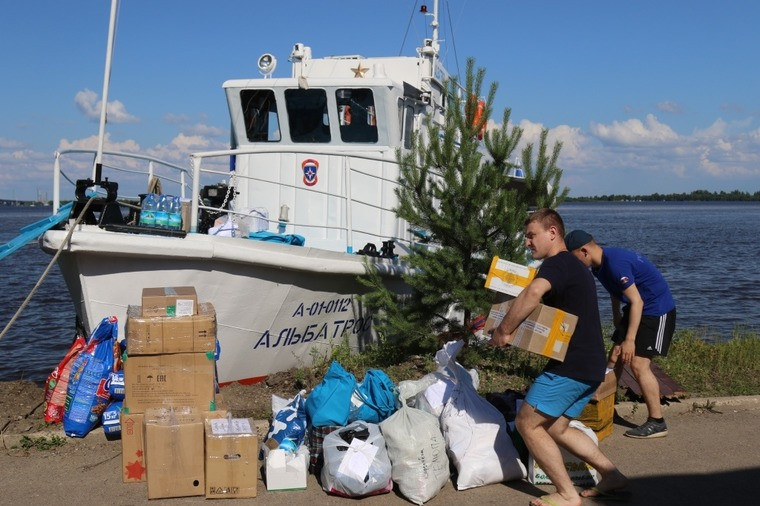Три тонны гуманитарной помощи отправили теплоходом в тонущую Сергеевку
