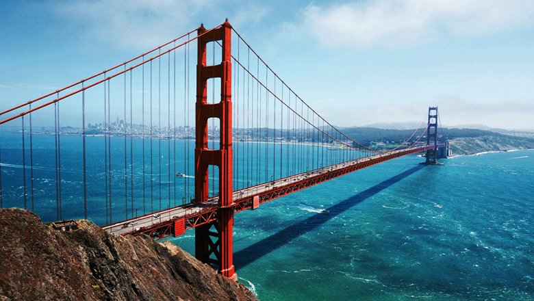 Висячий мост соединяет Сан-Франциско и пригороды округа Марин США. Его общая длина — 2 737 метров. Строительство гиганта, мгновенно узнаваемого по фото и кино, длилось всего четвре года. Мост назвали в честь пролива, а сам пролив нарекли золотым из-за сходства с бухтой Золотой Рог в Стамбуле.