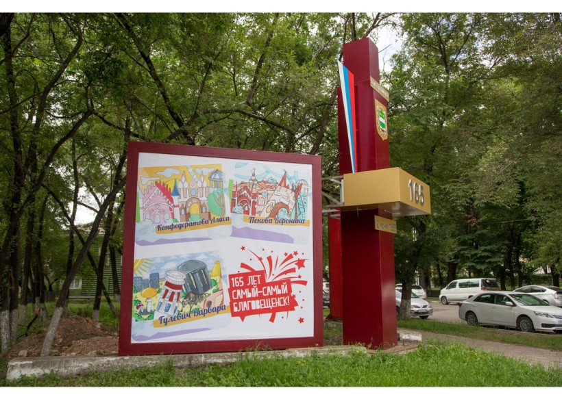Детские рисунки и портреты молодых ученых украсили информационные стелы в Благовещенске